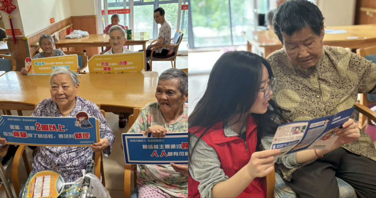 知识宣传:结合专业业特色,同时志愿者给老人们宣传结核知识,提高他们的防结核意识,考虑到一些奶奶们看不懂宣传手册,志愿者们声情并茂地为他们讲解结核病防治措施。