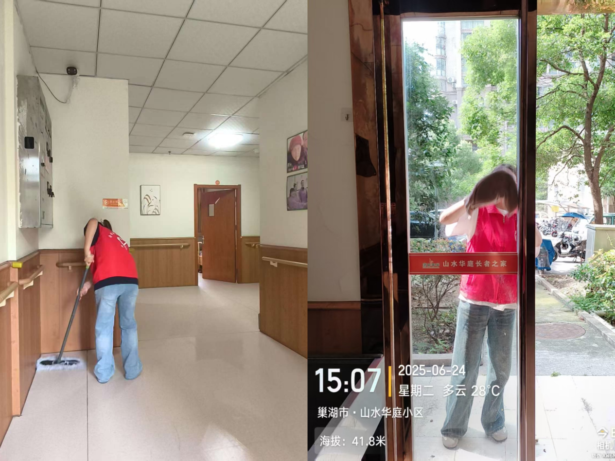 基础服务活动:一到养老院,志愿者们立即进入状态,擦窗、扫地、拖地等,在居住期间给老人们创造一个更加干净卫生的环境。除此之外,我们进行了分组开展服务,有的陪伴老人,倾听他们的人生故事,有的为老人修剪指甲、捶背揉肩,有的协助工作人员整理房间等。