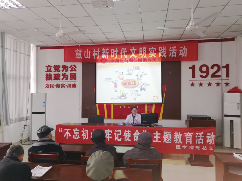 为深入推进“不忘初心、牢记使命”主题教育活动,beat365英国官方网站党总支按照校党委的统一部署,结合十一月份党员活动日,在做好全体党员、教职工理论学习和对照党章党规查找差距的同时,情系社区居民健康,努力把主题教育活动的主旨化为实际成效。