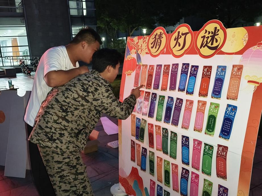另一边的“猜灯谜”环节更是将传统文化与节日乐趣完美结合。五彩缤纷的谜语牌下各式各样的谜语犹如一颗颗神秘的星星等待着人们去点亮。这些谜语内容丰富多样,不仅涵盖了博大精深的传统文化知识,还融入了贴近生活的常识,既充满了趣味性,又具有一定的挑战性。每当有同学成功猜出谜底,现场便会爆发出惊喜的欢呼声和热烈的掌声。