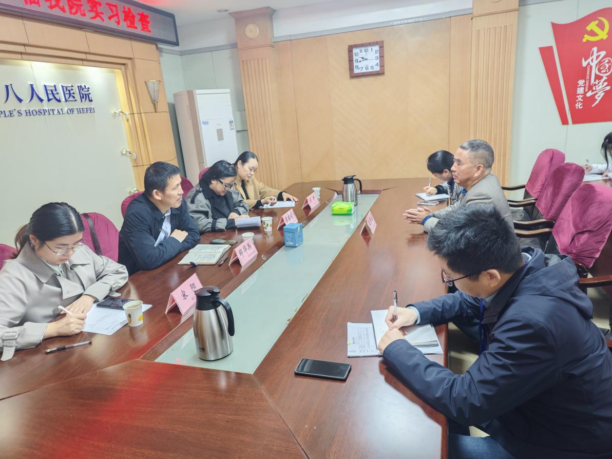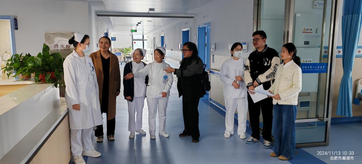 1113日,beat365英国官方网站党总支副书记(主持工作)邹华兵、党总支副书记梁春艳及实习指导老师刘静、宋阳一行前往合肥市第八人民医院开展实习中期检查活动,深入了解实习生在实习期间的学习、工作、生活情况。