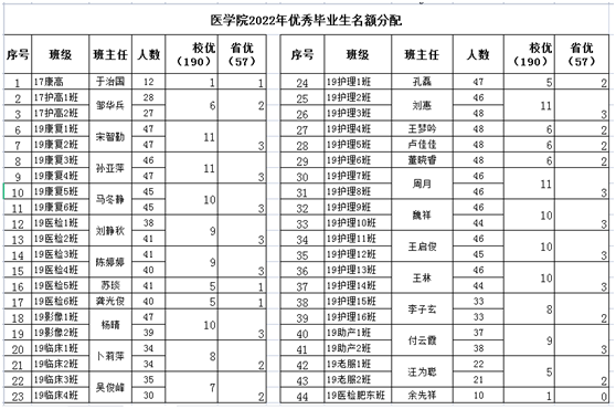 按各班级2022年应届全日制毕业生的人数,名额分配如下: