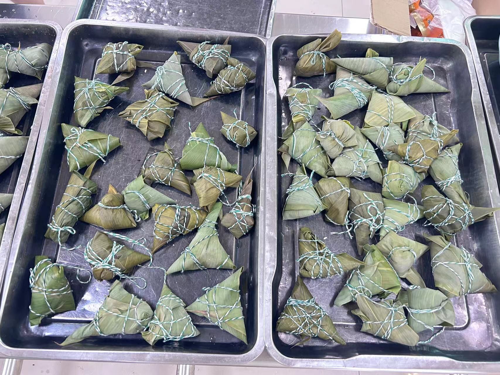 经过一下午的努力,大家成功制作出了一个个形态各异的粽子。随后,食堂将这些粽子煮熟,分发给参加活动的同学们品尝。那饱满的粽子,散发出诱人的香气,让人回味无穷。