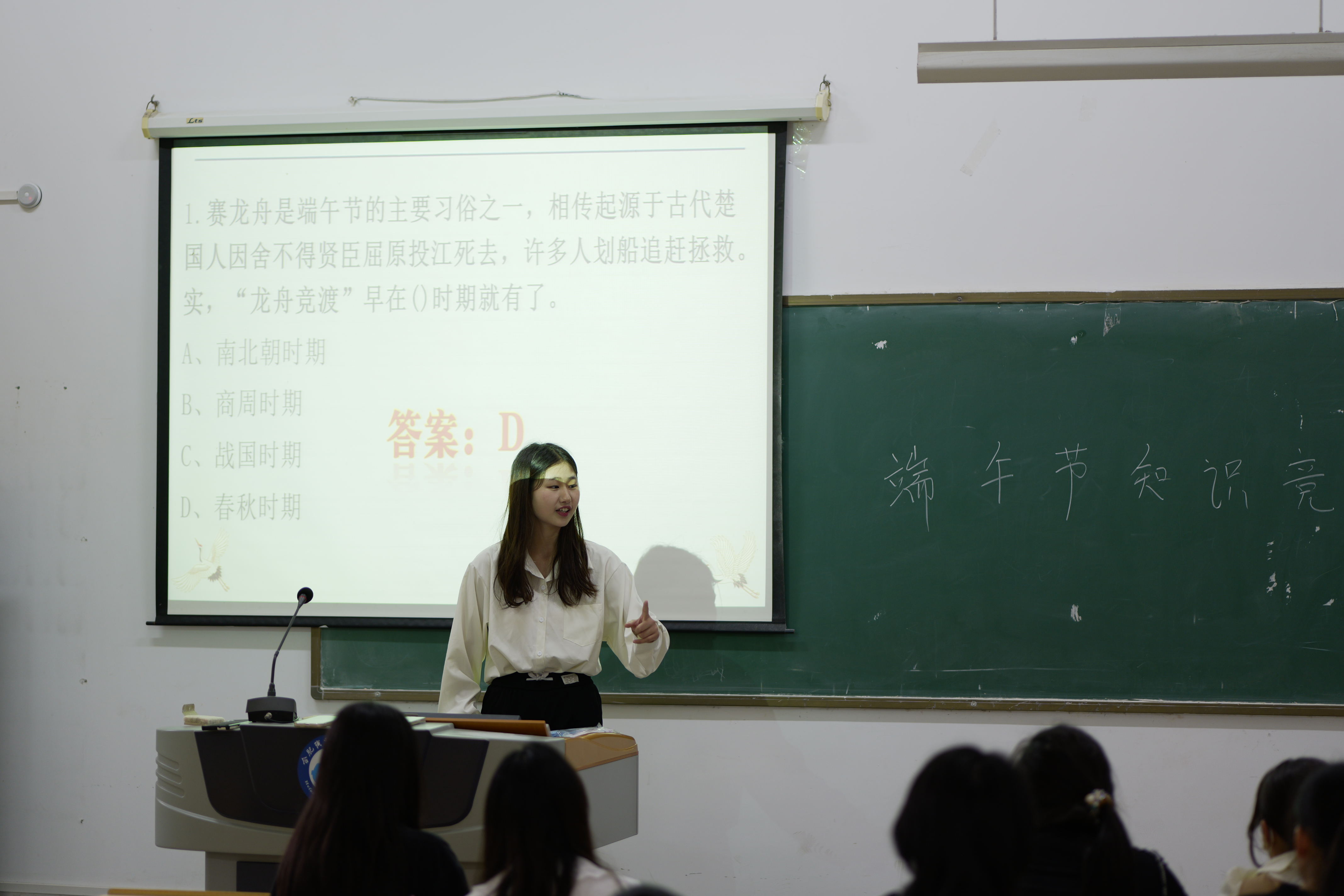 端午知识竞角逐,艾香四溢笑声满。天使护理协会举办端午知识竞答活动,一道道与端午习俗紧密相关的题目,让同学们在有趣的活动形式里, 增进对传统文化的理解。活动过程中同学们积极抢答,踊跃举手,教室里面不断传来大家的欢笑声和接连不断的叫好声。