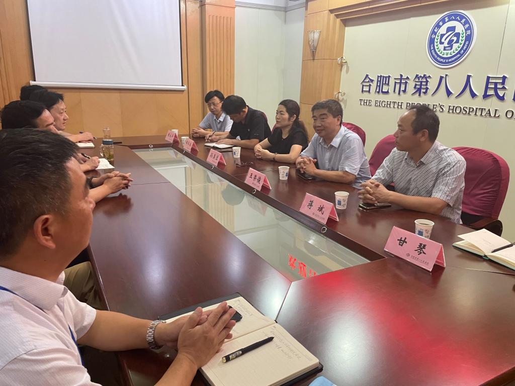 7月20日,beat365官网beat365英国官方网站院长王荣俊、副院长蒋斌、副书记孙美兰、副书记邹华兵、临床beat365英国官方网站教研室主任黄永平、综合管理办公室主任甘琴一行前往合肥市第八人民医院进行学习交流。合肥市第八人民医院党委书记蔡晓明、副书记副院长朱兴国、副院长杜勇、副院长倪秀武、纪委书记王正青及各职能部门领导参加了会议。