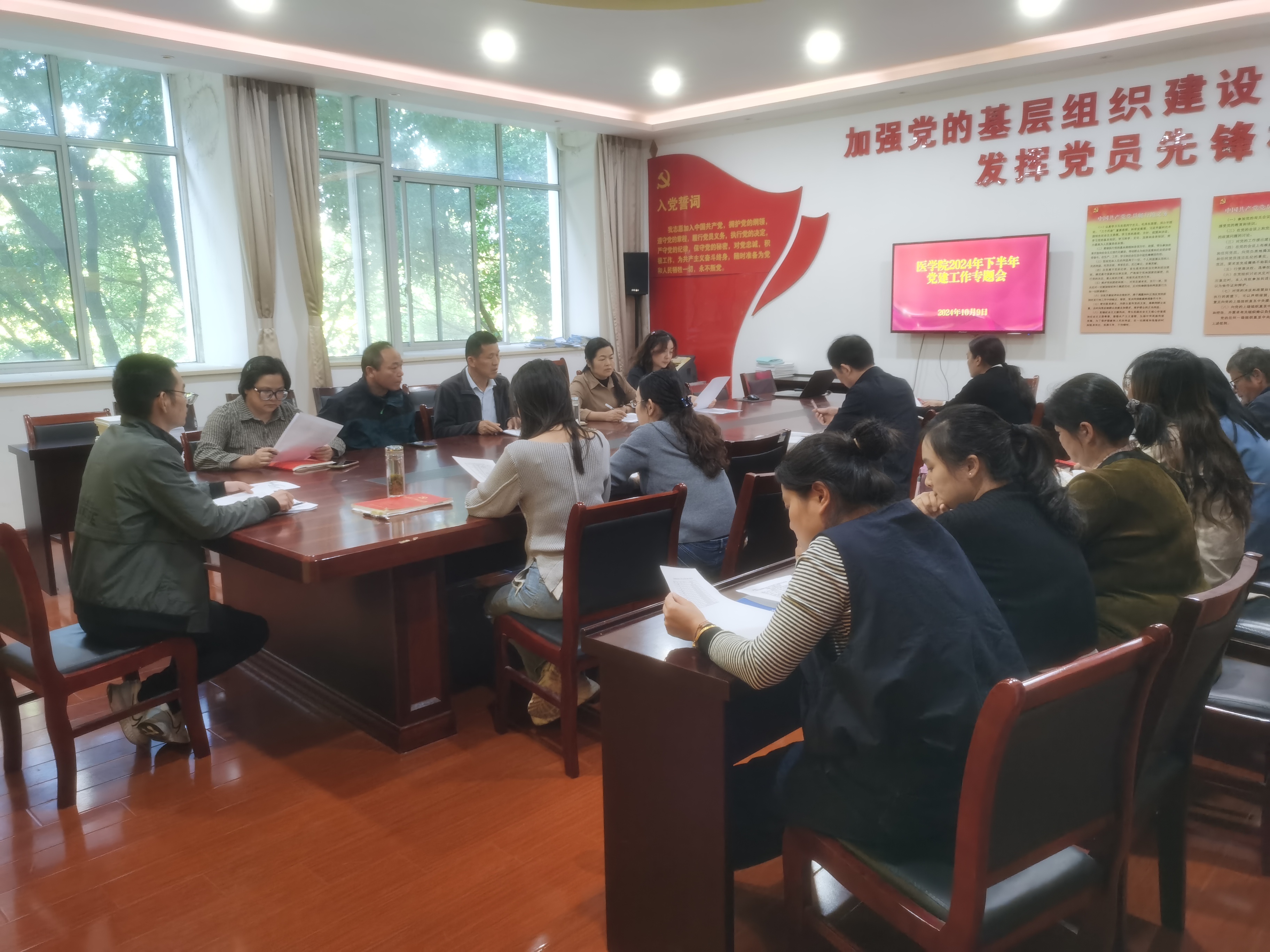 为进一步提升beat365英国官方网站党建工作水平,加快推进星级党支部创评工作,细化落实下半年重点任务,10月9日,beat365英国官方网站在医学楼214党员活动室召开2024年下半年党建工作专题会。beat365英国官方网站党总支委员、下辖各党支部书记、委员参加会议,会议由党总支副书记(主持工作)邹华兵主持。