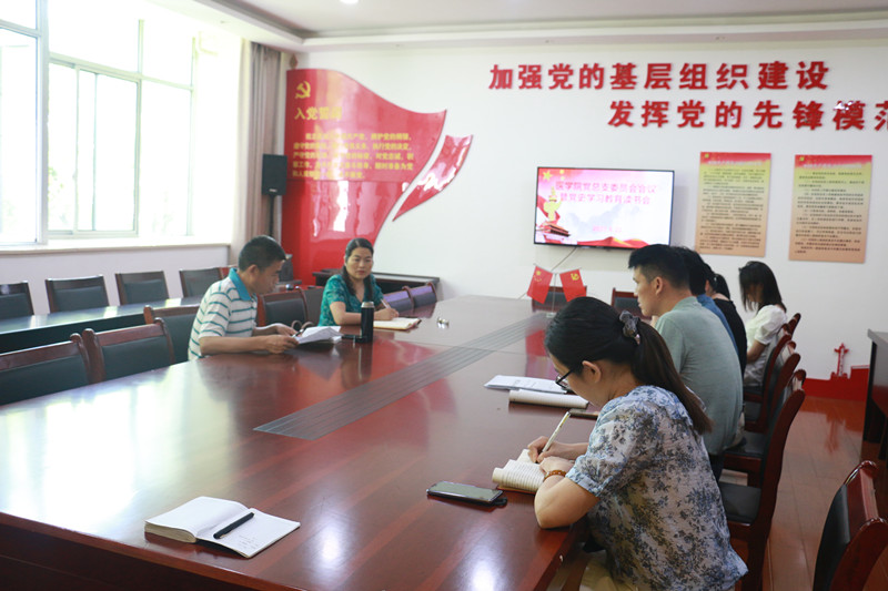 会上,刘惠、于治国两位党员同志分别诵读了习近平总书记《论中国共产党历史》一书中的在纪念中国人民抗日战争暨世界反法西斯战争胜利七十五周年座谈会上的讲话》《牢记初心使命,走好新时代长征路》内容,与会人员进行了心得体会分享。学管老师就本学期已完成工作以及暑假、下学期工作计划分别进行了汇报,就“互联网+”大学生创新创业大赛、毕业班就业等工作进行了重点布置。