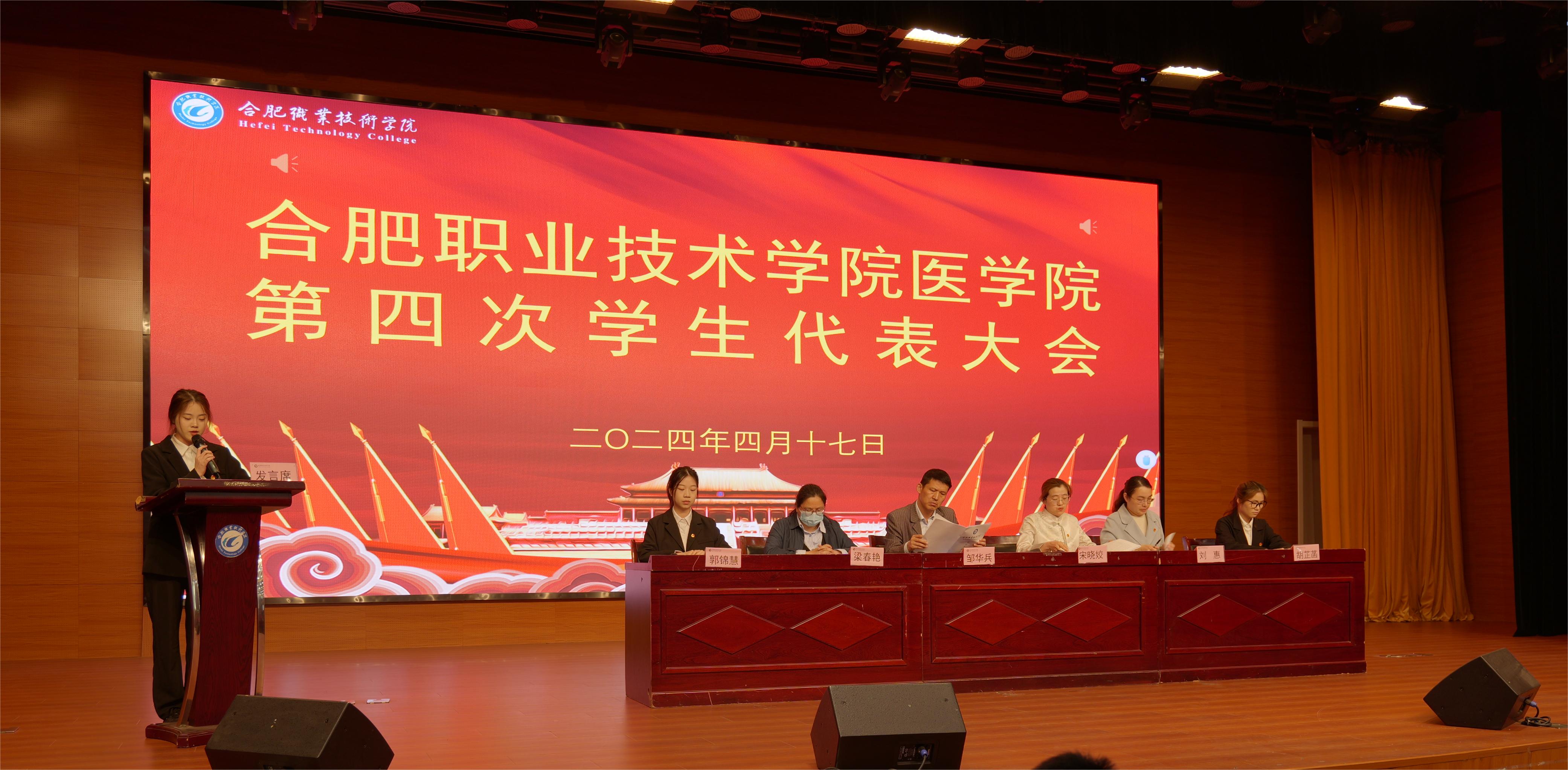 4月17日下午,合肥职业技术学院beat365英国官方网站第四次学生代表大会在鼓山校区大学生活动中心隆重举行。beat365英国官方网站党总支副书记(主持工作)邹华兵、党总支副书记梁春艳,校团委宋晓娇老师,beat365英国官方网站团总支书记刘惠,beat365英国官方网站全体学管老师及148名学生代表参加会议,校学生会主席胡芷菡应邀参加。大会由beat365英国官方网站学生代表郭锦慧主持。