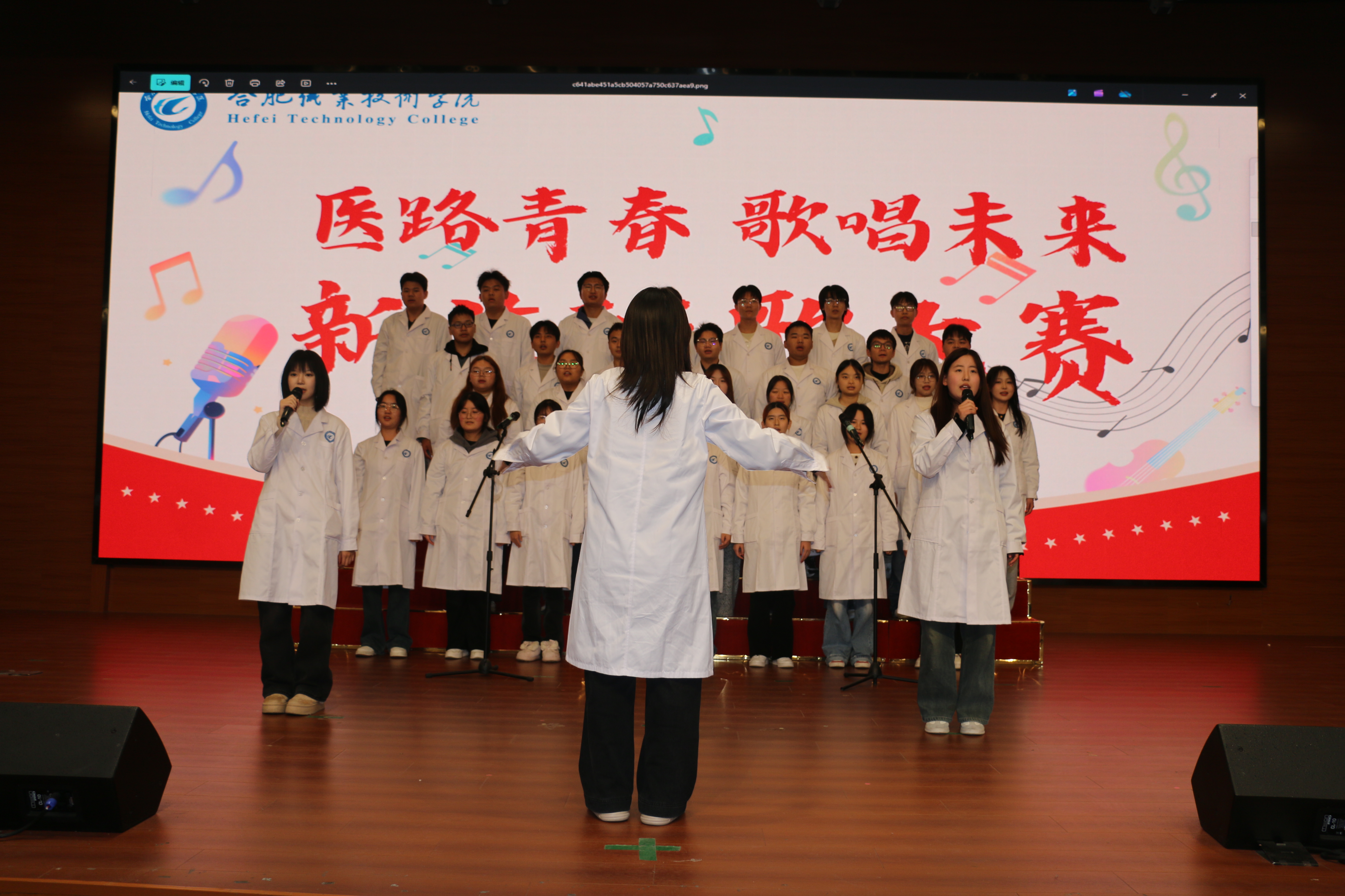 比赛在同学们的热情期待中拉开序幕。参赛班级根据赛制要求,在必选曲目《光荣啊,中国共青团》和《合肥职业技术学院校歌》中择一进行演唱。在自选曲目环节,各班级精心挑选歌曲,并结合专业特色和班级文化进行创意编排,大家用饱满的热情、整齐的队形和富有创意的表演,向评委老师和台下观众们展现了属于自己班级的青春面貌和蓬勃生命力。随着同学们渐入佳境,各班级争相展示出最佳状态,声浪时而蜿蜒起伏,时而响彻礼堂,将比赛推向一个又一个高潮。