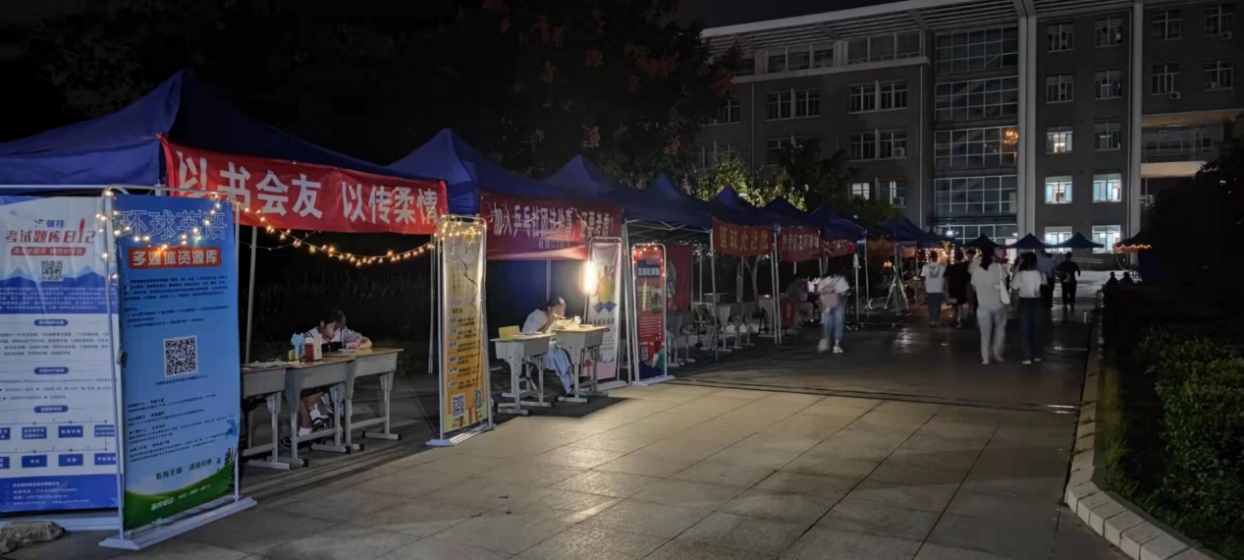 自万丰祥餐厅向北望去,在长达百米的长廊的两侧,各社团小组正在紧锣密鼓的开展纳新活动,通过海报、横幅、作品展等形式向往来的大一新生们展示各社团的特色。优秀作品、动感音乐吸引了众多学生的广泛关注和积极参与。在社团成员的细心讲解和耐心引导下,前来报名的新生纷纷选择了自己感兴趣的社团。