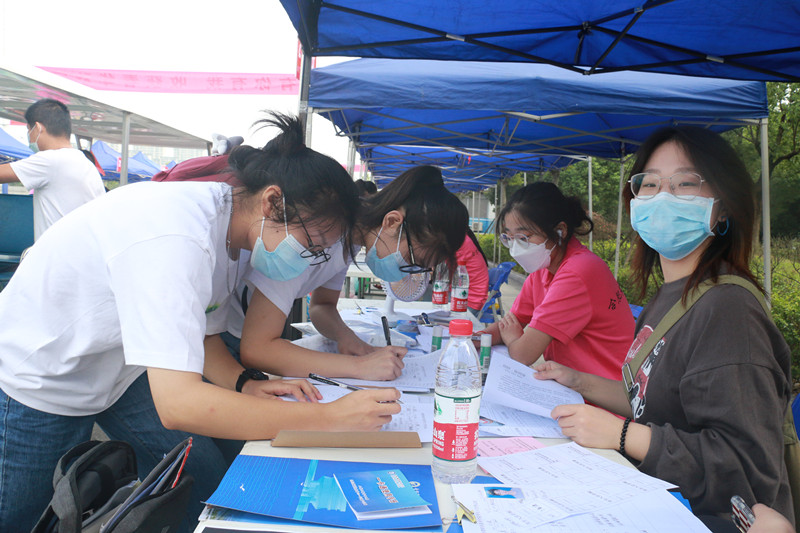 为保证新生一天内报到完毕,beat365英国官方网站教师队伍与学生志愿者们7:00准时到岗,在鼓山校区北侧东门迎新点等候新生报到。学生陆续抵达报到现场,严格按照学校疫情防控相关要求在“一米线”间隔排队、先后进行安康码核查是否绿码、疫苗接种与否、14天行程有无异常、核酸检测报告是否阴性等信息核验、测额温、行李与手消毒、更换口罩、信息登记与报到等多个环节,报到现场井然有序。