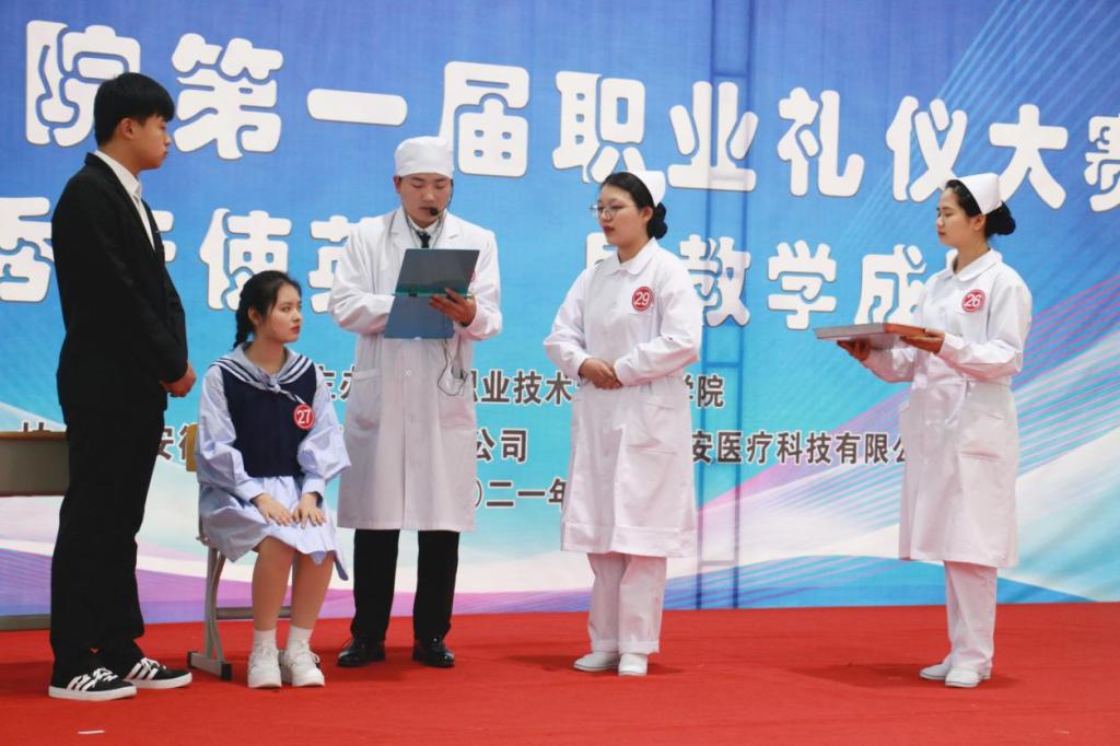 落落大方展风采。本次比赛根据专业情况设置情景,大赛覆盖面广、组织有序,学生参与度高,参赛选手准备充分,赛出水平、赛出风格。选手们通过站姿、走姿、坐姿、蹲姿(拾物)、持病历夹、端盘姿态、交流沟通等自由组合成案例场景进行职业礼仪风采展示。选手们充分展示了日常工作中规范优美的礼仪举止,赢得了在场观众的好评。