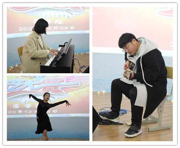 经过两轮筛选,最终有十名选手晋级决赛。决赛分为两个环节,第一个环节为十位选手脱稿朗诵。参赛选手用饱满的深情和磅礴的气势为我们带来了《青春》、《元旦来了》、《乌苏里放江歌》、《父亲与沙原》、《理想》等极具时代气息、紧扣时代主题、展现中国魅力的文章。第二个环节为参赛选手的才艺展示。本次才艺表演节目涵盖了舞蹈、歌曲、乐器、音乐剧、相声、小品等表演形式。晚会现场,语言类节目《写对联抗疫情》激发了在场大学生勇担时代责任的决心;歌舞表演类节目热情大方,配上动感的音乐背景,展现了beat365英国官方网站新生的青春芳华;音乐剧节目《后妈茶话会》更是别出心裁,以英文配音的方式吸引在场学生,让观众感受到了英文与音乐搭配起来的魅力。晚会最后,钢琴曲和吉他表演绵柔婉转、笙曲悠扬,为大赛画上了一个圆满的句号。