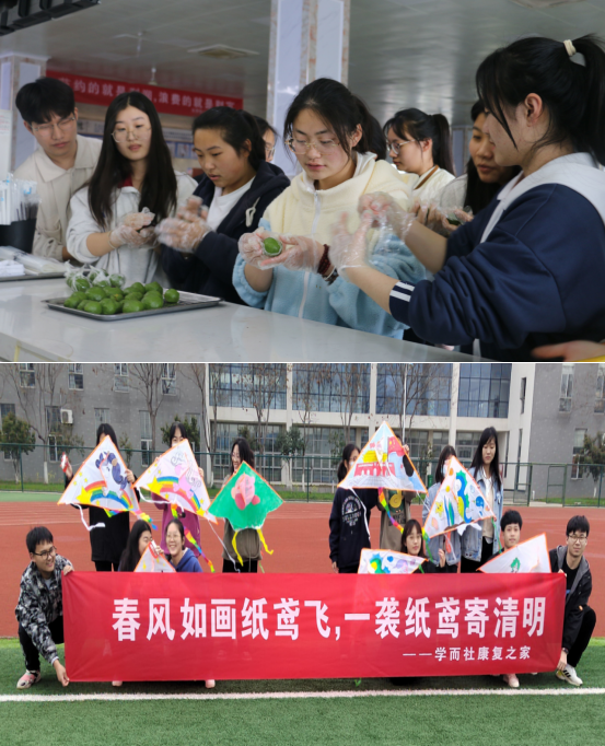 绘声指尖艺术社组织同学们巧手绘制油纸伞,寄托清明哀思;康复之家社团组织同学们搭骨架框、画风筝面,制作风筝,利用春日假期“忙趁东风放纸鸢”;绘声追梦文艺社组织同学们开展青团制作活动,青团寓意团圆和纪念先人,让学生感受清明传统节日氛围的同时,增强大家对传统节日的认同感。