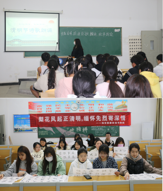 天使护理协会和知书答影协会联合举办清明节主题诗词朗诵和红色英雄故事朗读活动,在活动中学习英雄事迹,缅怀革命英烈。同学们还通过一幅幅摹写的古诗词作品,感受浓郁的清明文化氛围。