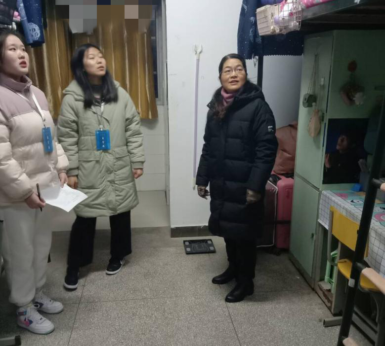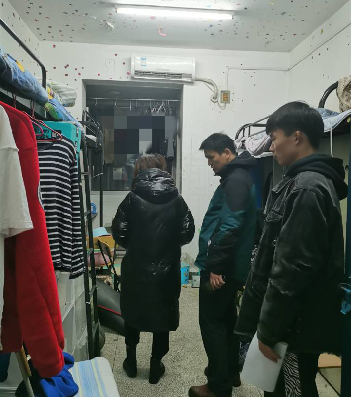 为给学生营造安全、健康的生活氛围,查找并排除宿舍安全隐患,2020年12月29日晚,beat365英国官方网站党总支副书记孙美兰和邹华兵带领全体学管老师和自管委的同学们,集中对beat365英国官方网站713间寝室开展安全隐患排查工作,这是beat365英国官方网站学生日常管理的一项重要常规工作。