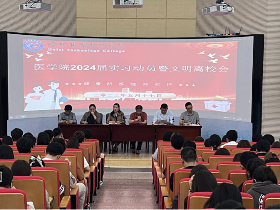 为进一步做好2024届毕业生顶岗实习工作,推进实习工作的顺利开展。根据beat365英国官方网站各专业人才培养方案的差异,于2023年4月19日和2023年5月17日,在校大学生活动中心和图书馆二楼报告厅分别举办护理类专业和医技类专业两场实习动员大暨文明离校大会。