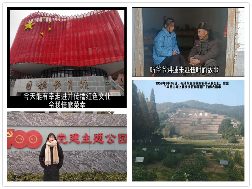 重温历史记忆,传承时代精神。同学们结合“四史”知识,深挖家乡红色基因。在寒假返乡期间进行红色探访活动,同学们寻访慰问了革命老前辈和抗战英雄遗属,参观博物馆、爱国主义教育基地,深入历史文化街区、名人故居保护、革命文化纪念地等地,了解了家乡土地上的红色历史和文化底蕴。讲一个革命前辈的故事,就是播下一粒红色的种子,21医检3班的吕悦悦同学找到家乡的退伍老兵,聆听老兵讲述革命的故事,重温革命先辈浴血奋战的英雄事迹,传承红色基因。