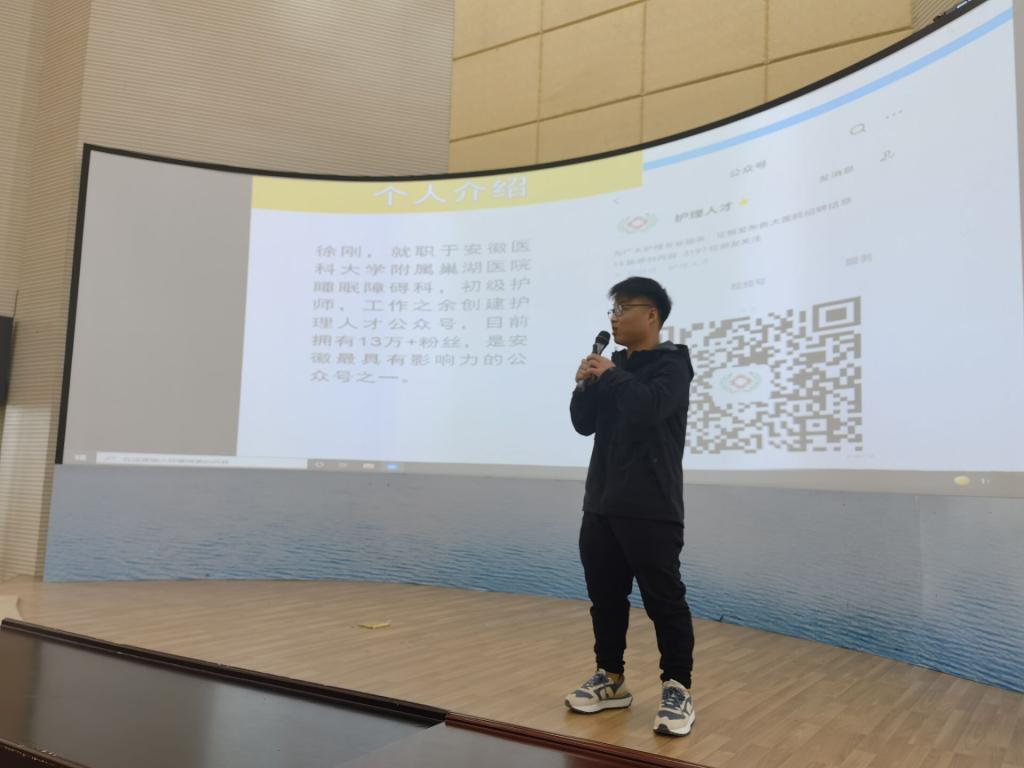 徐刚拥有安徽医科大学附属巢湖医院四年工作经验,对毕业生如何度过实习生活、如何备战专升本考试提出了宝贵建议。并结合自己创办、运营“护理人才”微信公众号经历,对毕业生求职如何把握就业机会、如何准备面试做出具体指导。现场同学们针对自己关心的问题积极提问,徐刚都给予了详细的解答。