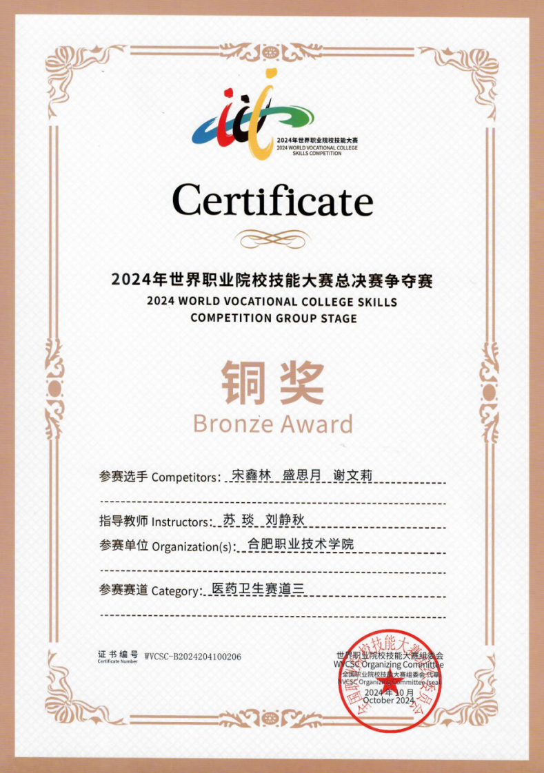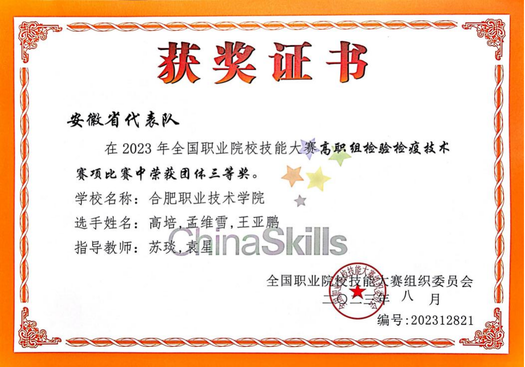 医学检验技术专业是安徽省首批高职特色专业、中央财政支持高等职业学校提升专业服务产业发展能力专业、安徽省卓越技能型医学检验技术人才培养专业、安徽省高水平高职专业。实施“校企融合、学训交互、能力递进”人才培养(2+1模式)、院校双主体联合“工学结合”人才培养(1+1+1模式)。在学生技能大赛方面获省级以上特等奖1项、一等奖2项、二等奖3项、三等奖16项;学生创新创业大赛省赛金银奖各1项、国家级创新创业大赛二等奖1项;2023年获全国职业院校技能大赛检验检疫技术赛项三等奖1项、安徽省职业院校技能大赛检验检疫技术赛项一等奖2项。2024年获世界职业院校技能大赛检验检疫技术赛项铜奖1项、安徽省职业院校技能大赛检验检疫技术赛项一等奖2项。