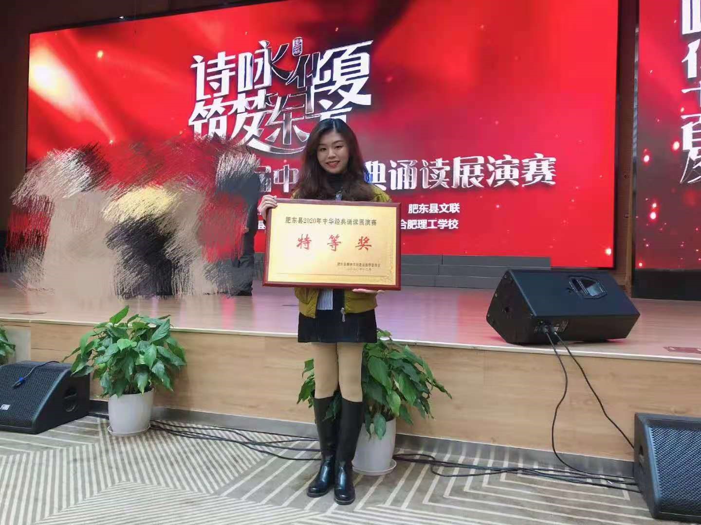 深入贯彻党的十九届五中全会精神,增强家国情怀,由肥东县委主办的2020年肥东县第九届中华经典诵读比赛,在合肥理工学校学术报告厅隆重举行。由beat365官网校企联合培养19医检肥东教学班7名同学、部分实习同学和医院方工作人员共同组建的参赛队,代表教学医院安徽医科大学第一附属医院东区(肥东县人民医院)参加比赛,经过激烈角逐,最终荣获本次比赛特等奖,胡蒙蒙同学作为主诵人员,表现突出、得到院方领导和老师们的充分赞扬和肯定。