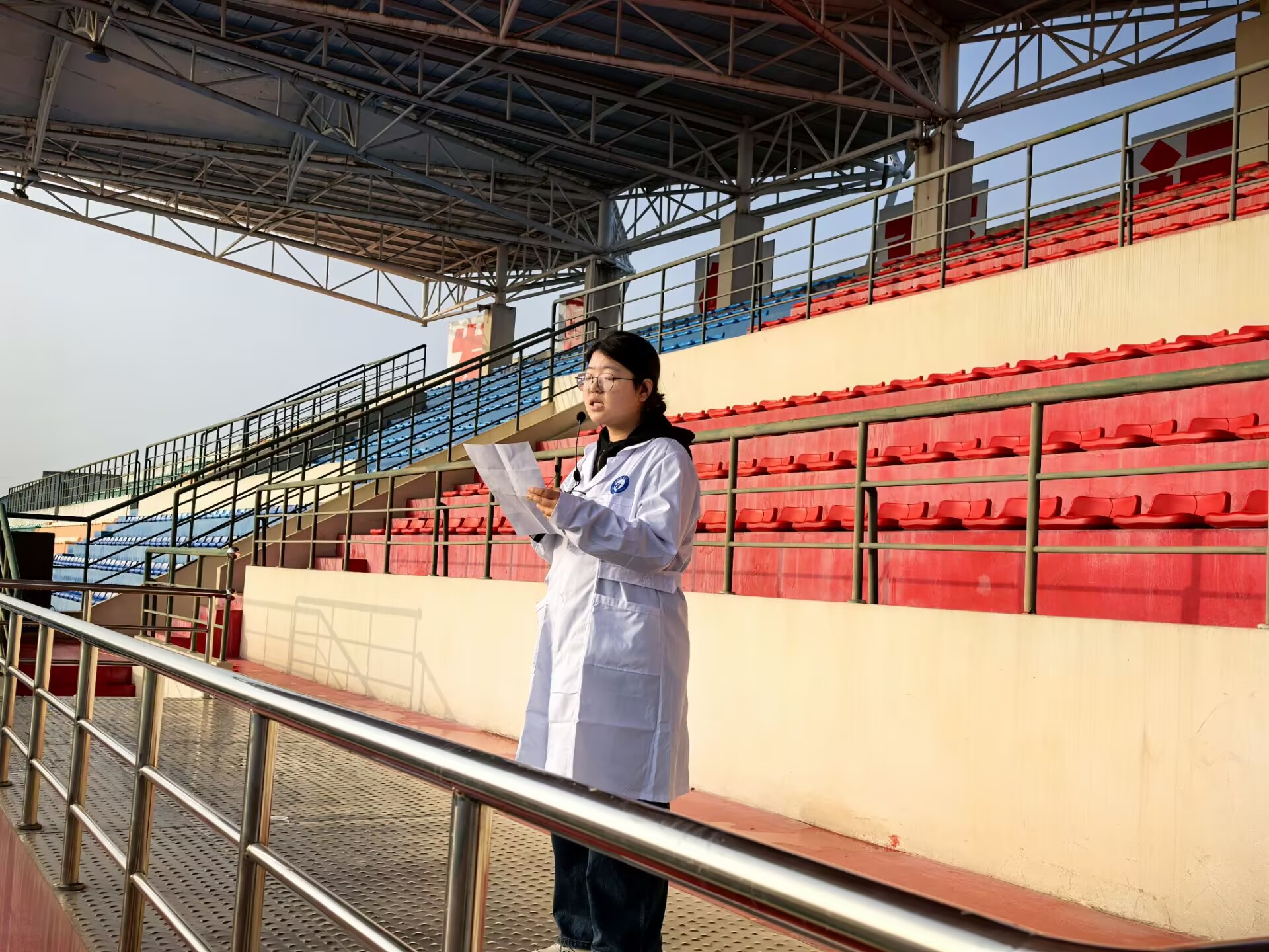 活动在庄严的国歌声中拉开帷幕,鲜艳的五星红旗冉冉升起,全体师生肃立,表达对国旗的敬意。随后,25护理1班的周昌薇同学作为学生代表发表了以清廉为主题的国旗下讲话。