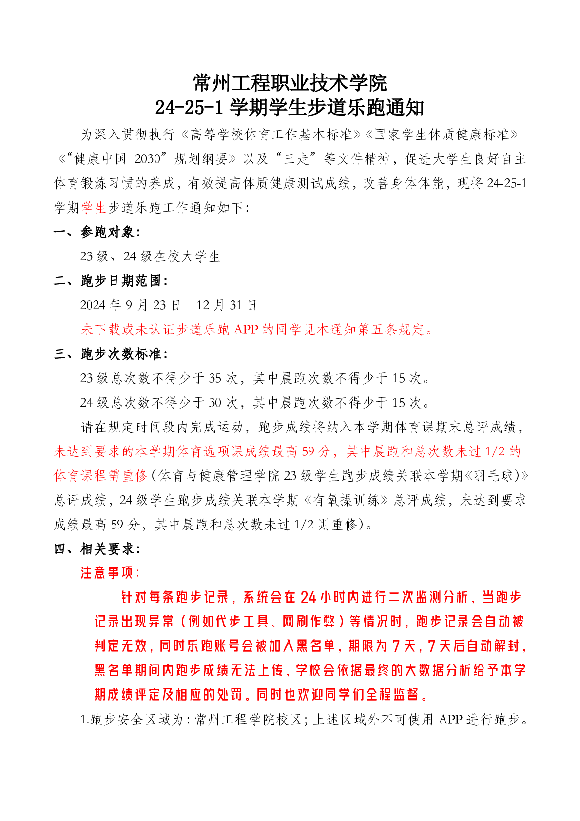 bw必威西汉姆联官方网站 24-25-1 学期学生步道乐跑通知