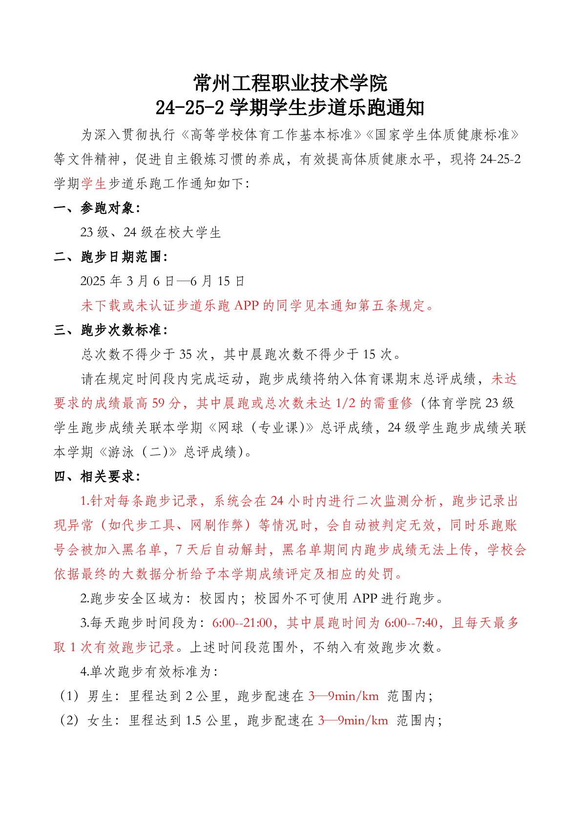 常州工程学院24-25-2学期学生步道乐跑通知